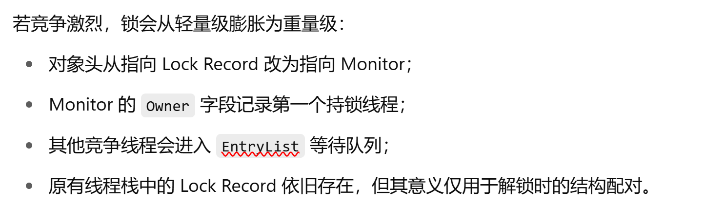 轻量级锁: 轻量级锁其实更多是为了解决同一线程的多次重入问题, 轻量级锁